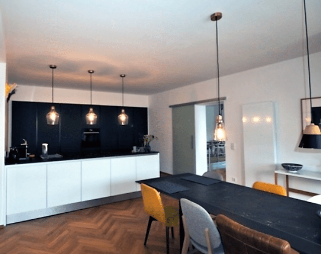 Wohnzimmer mit tiefen Lampen